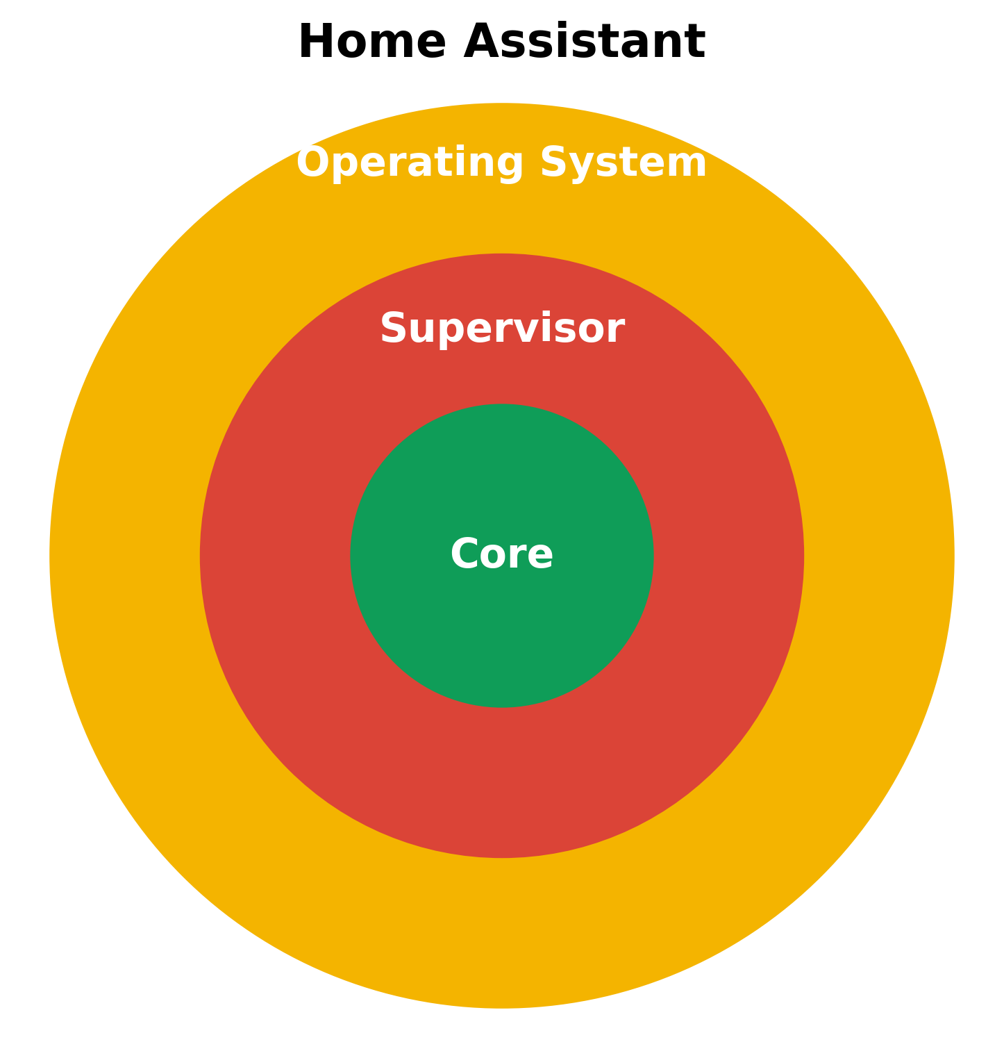 У Home Assistant есть чётко описанная архитектура: она устроена как концентрические круги, где в центре находится Core, его окружает Supervisor, а внешний слой представляет собой операционную систему.